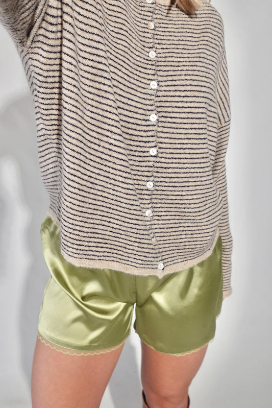 Piper Cardigan- Pin Striped Natural/Navy