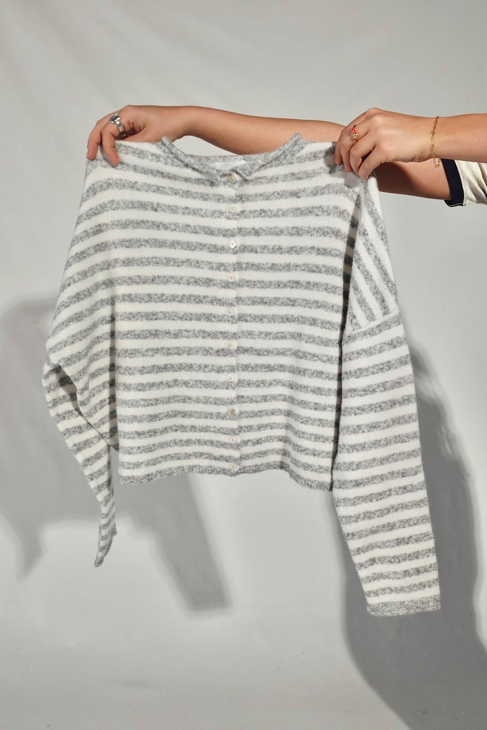 Piper Cardigan- Muti Striped Dusty Blue