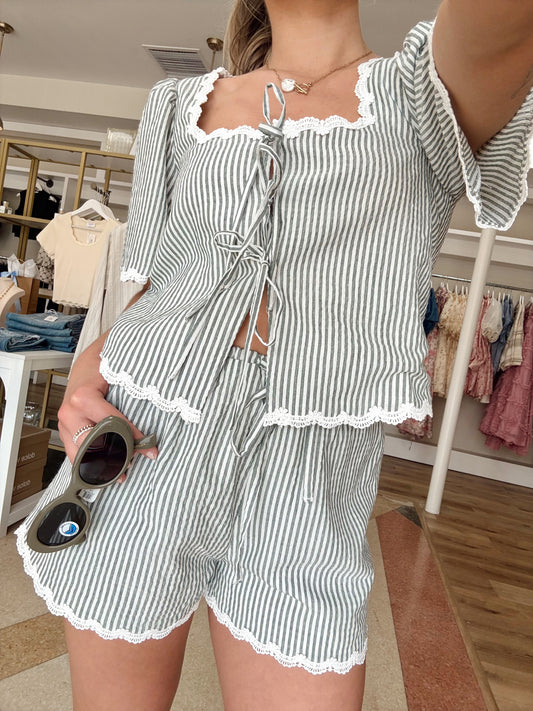Sold outVienna Front Tie Top- Green/White