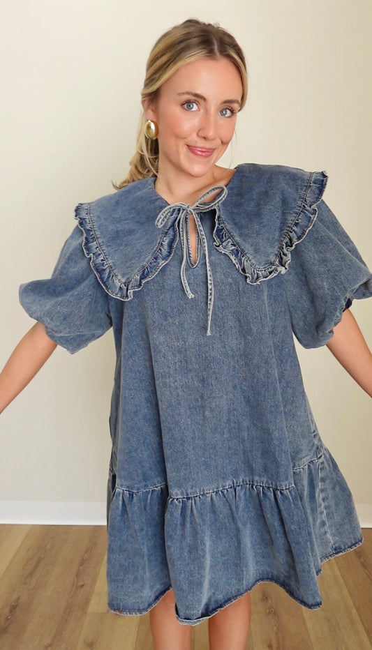 Sold outWhimsy Denim Dress- Medium Wash