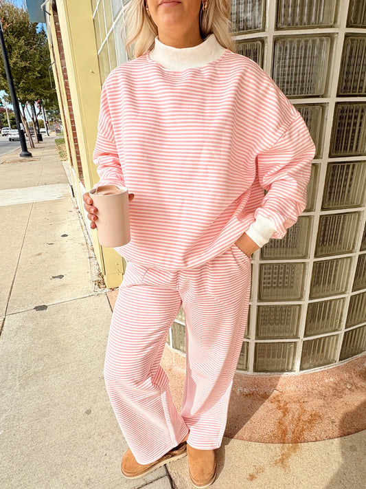 Sabrina Quilted Mockneck Sweatshirt- Pastel Pink Multi