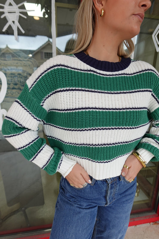 Meadow Striped Sweater- Green/ Navy Combo