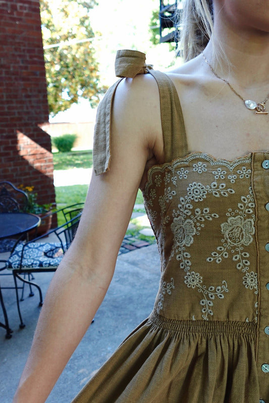 Secret Valleys Embroidered Dress- Olive
