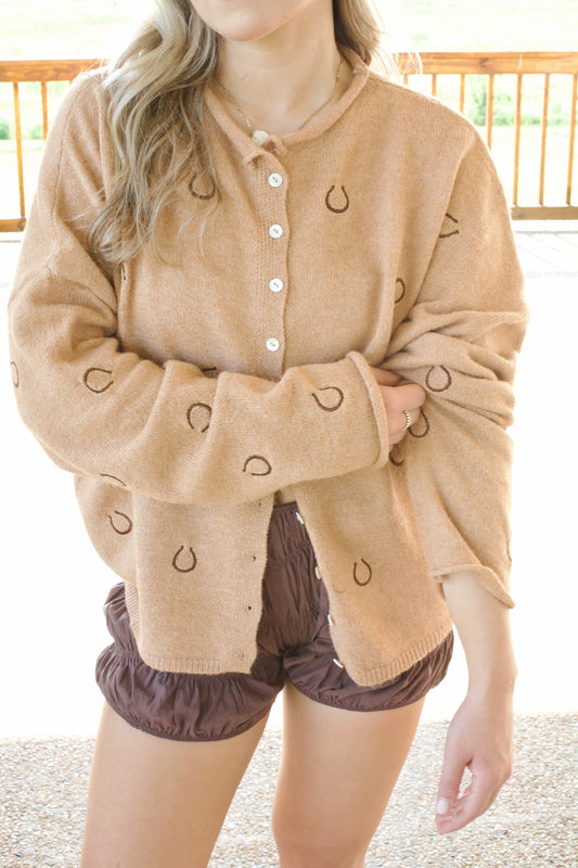 Lucky Horseshoe Piper Cardi- Camel Brown Multi