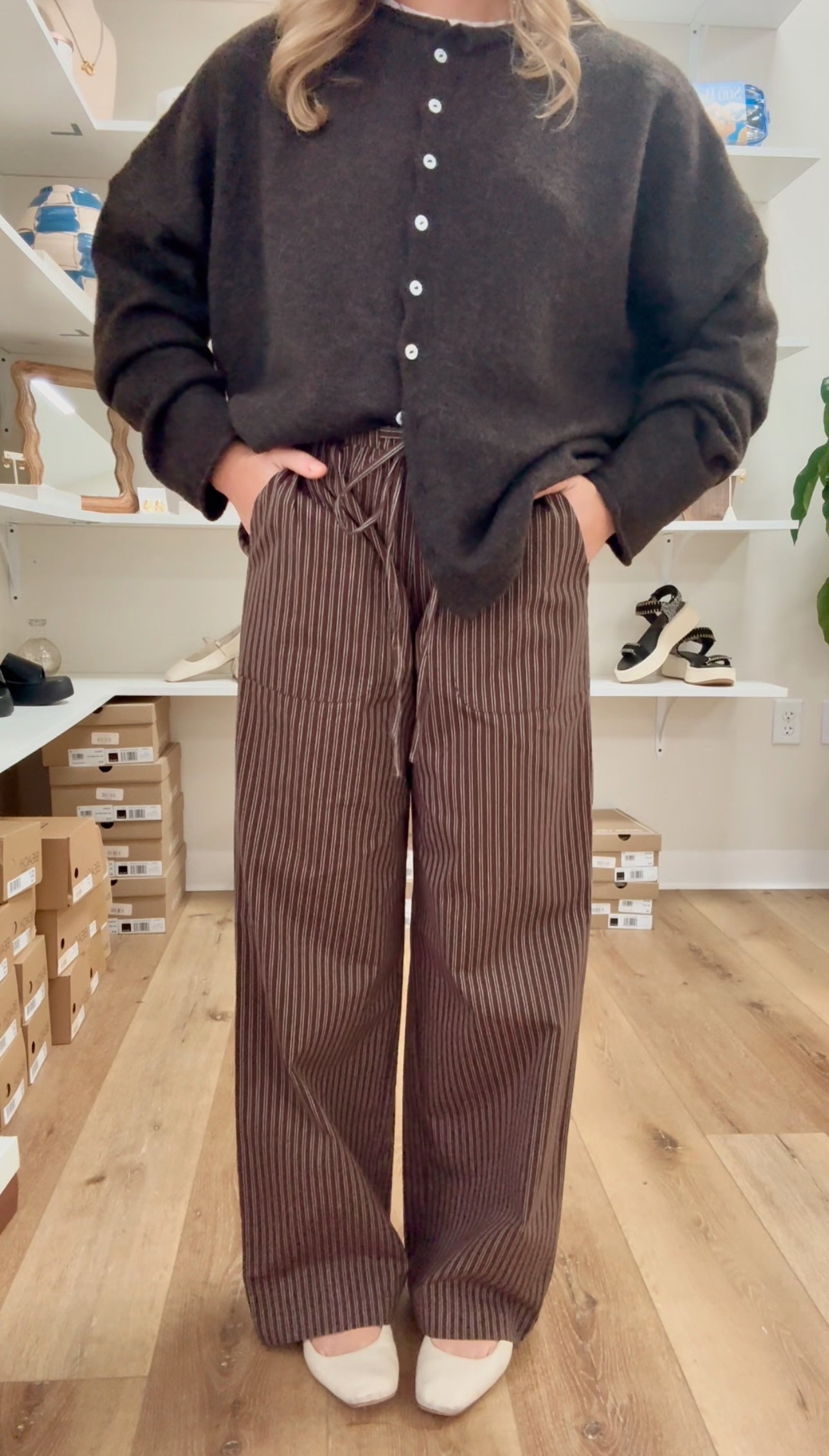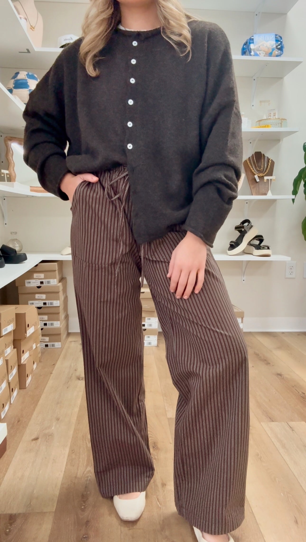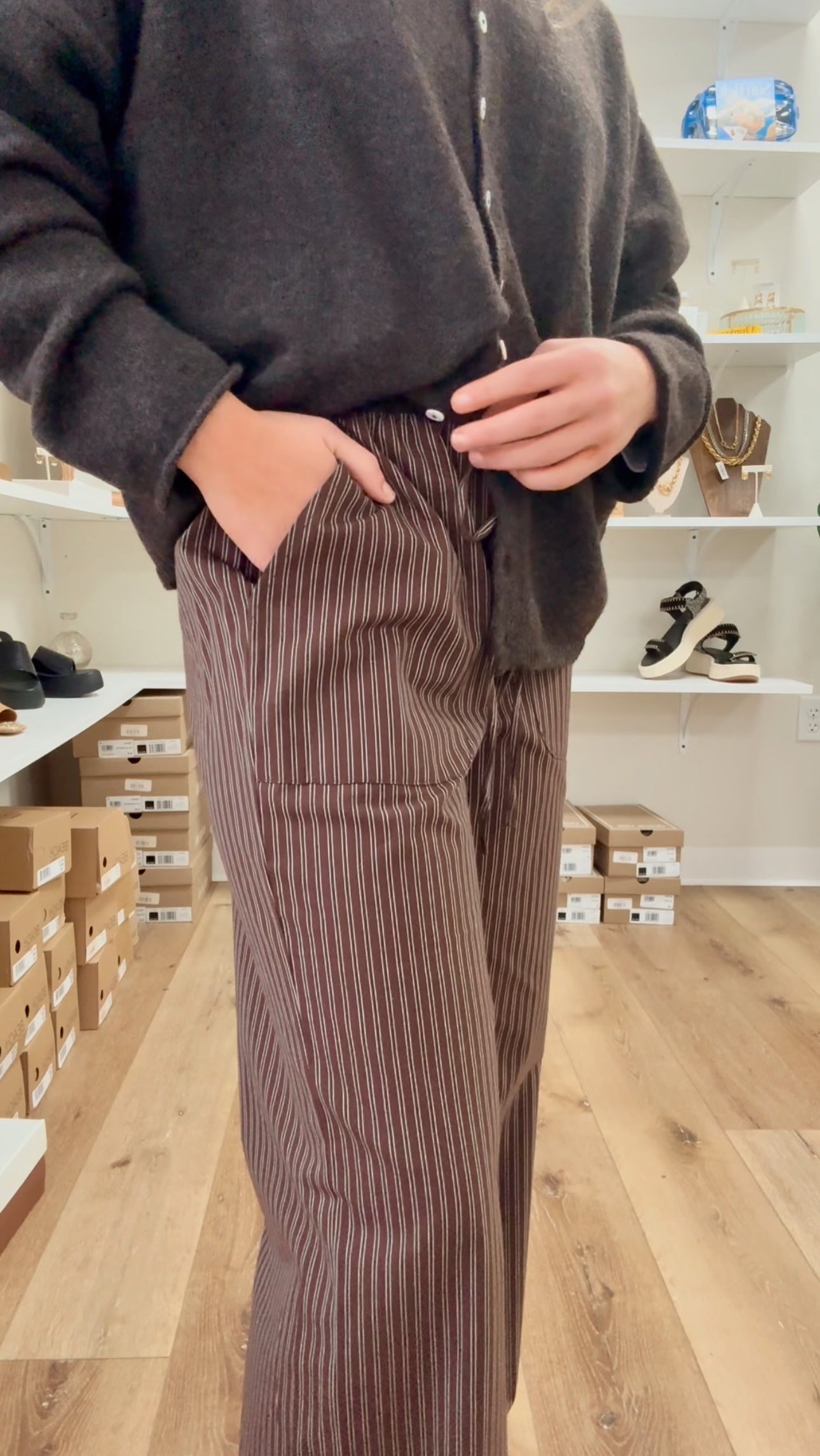 Dixon Pinstriped Pull-on Pants- Brown