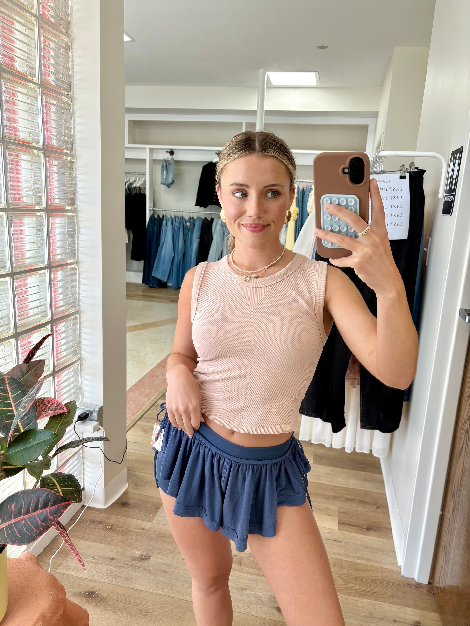 A new addition to your favorite compressive collection, this sleek tank is featured in a cropped fit and muscle-style silhouette with ribbed knit detailing and slight scoop neckline.