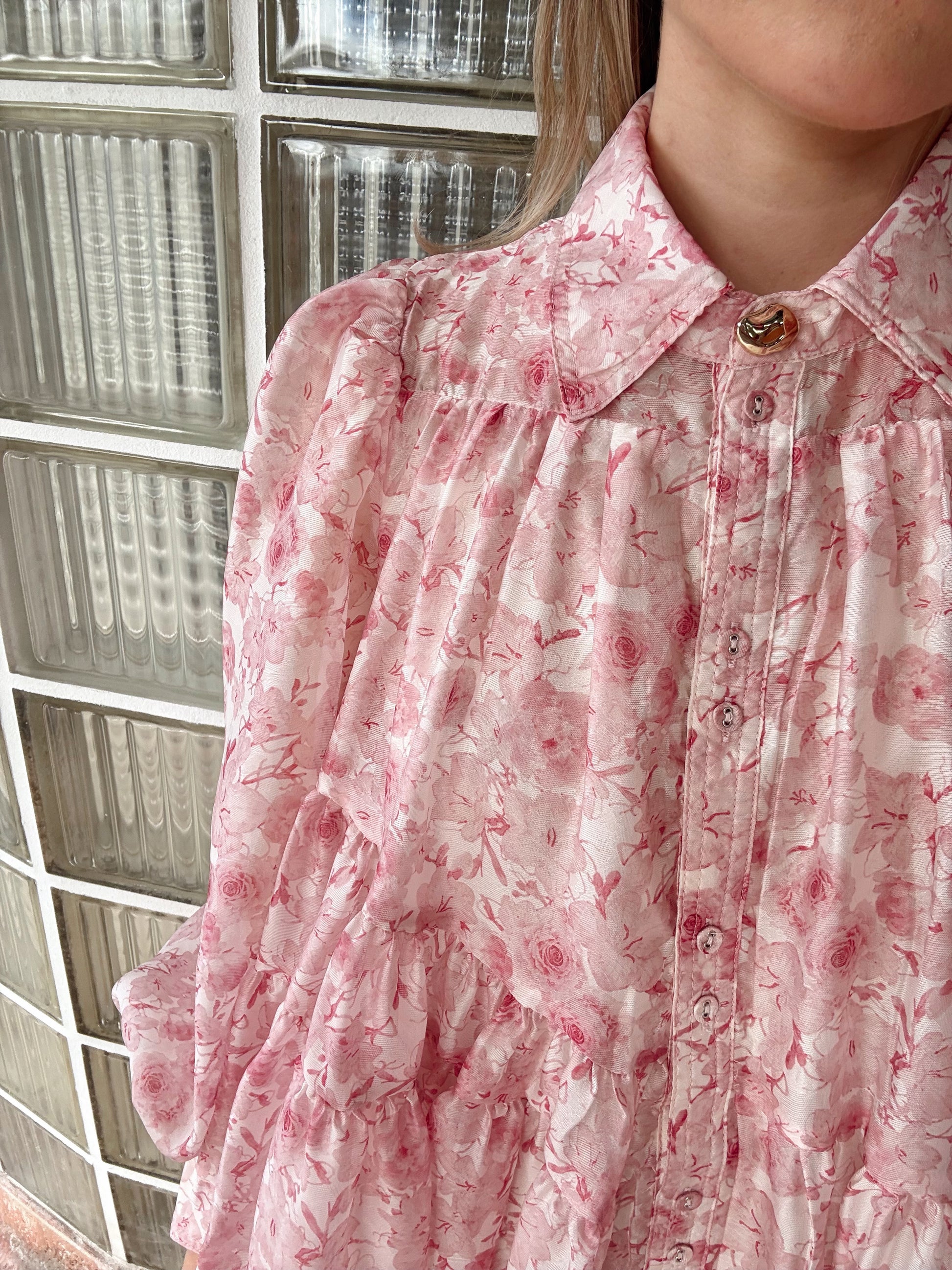 Rosie Mini Shirt Dress- Pink Floral