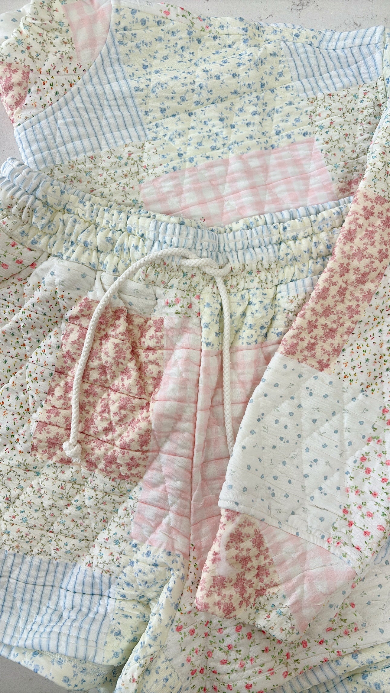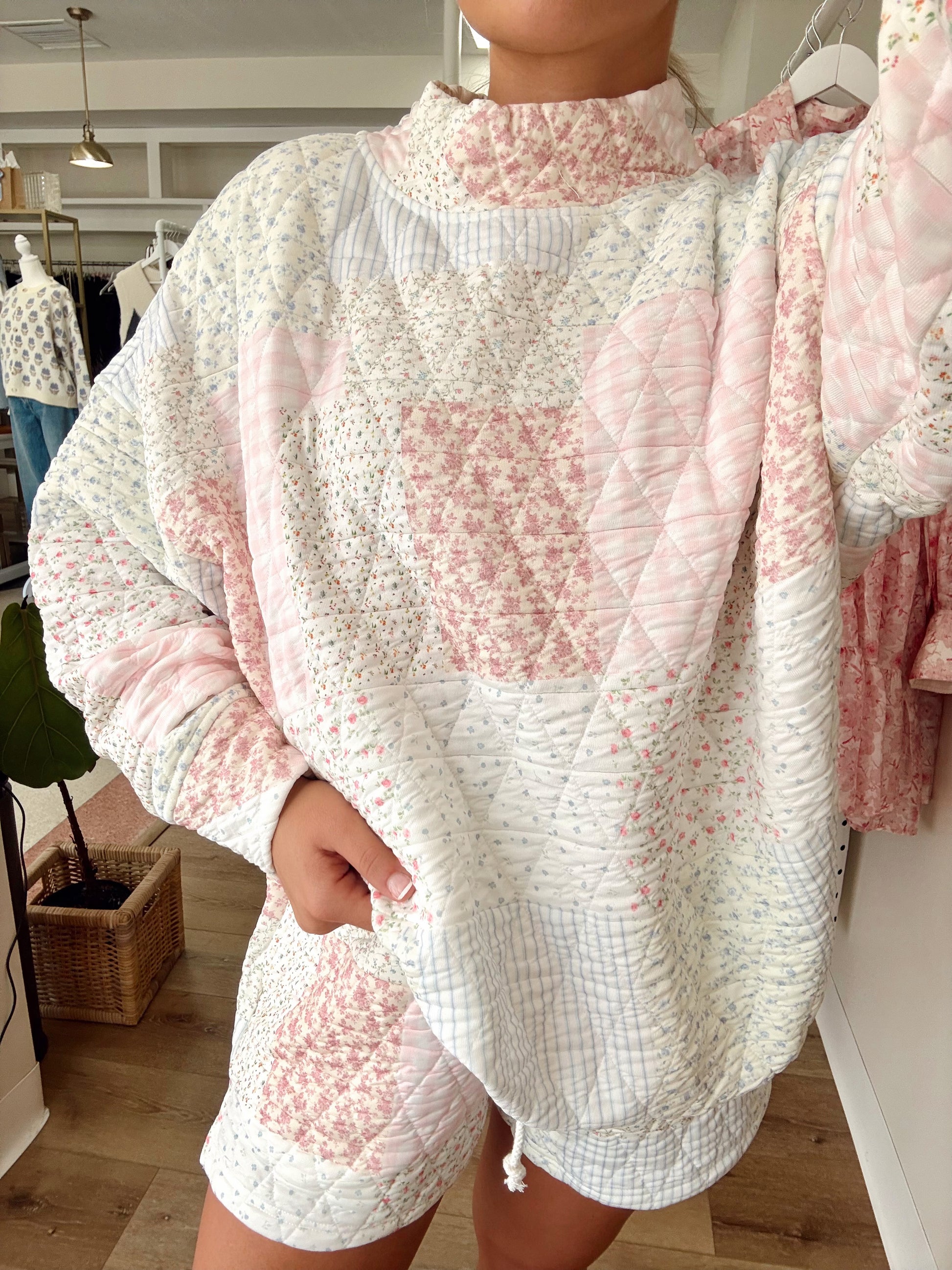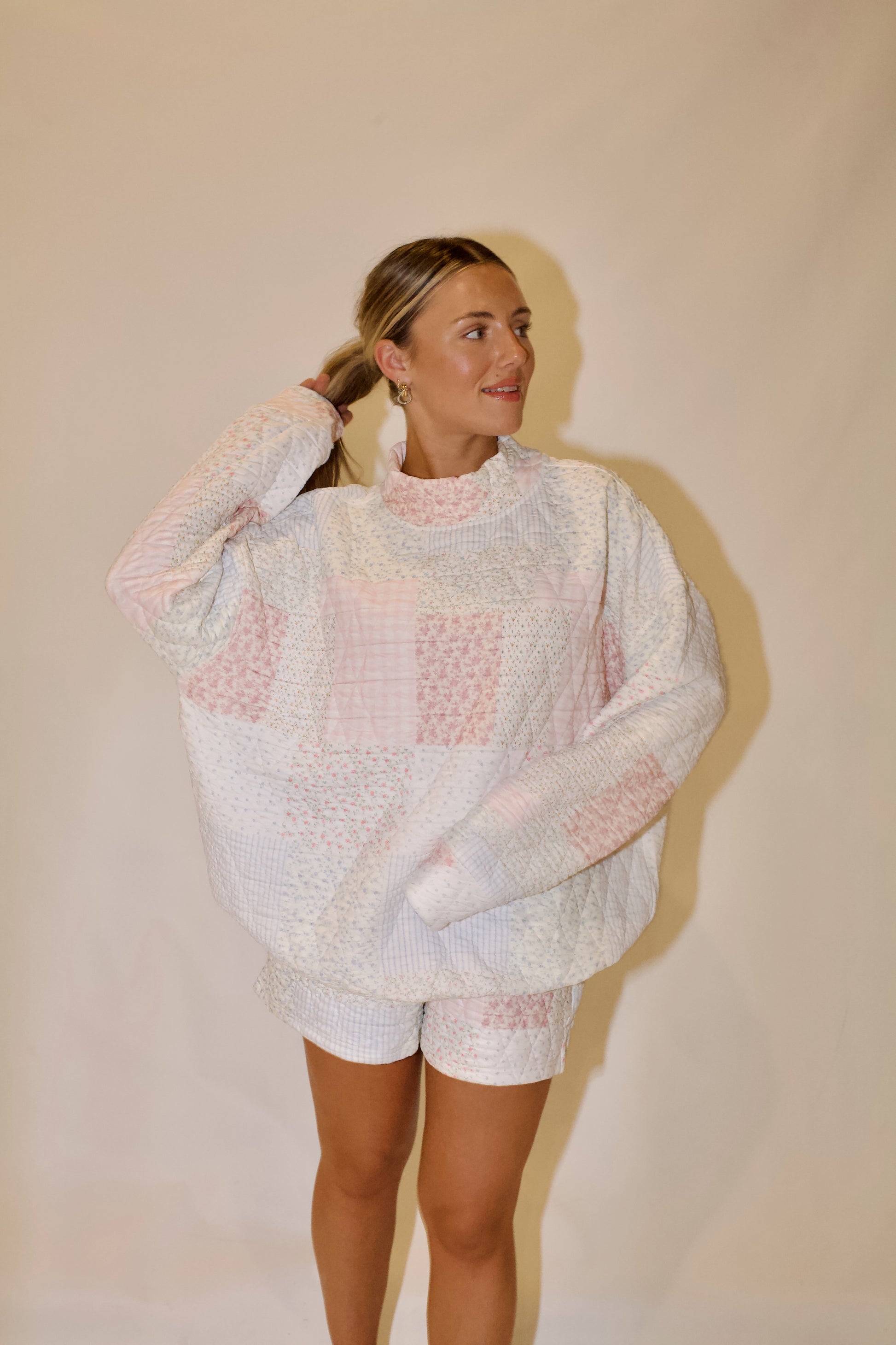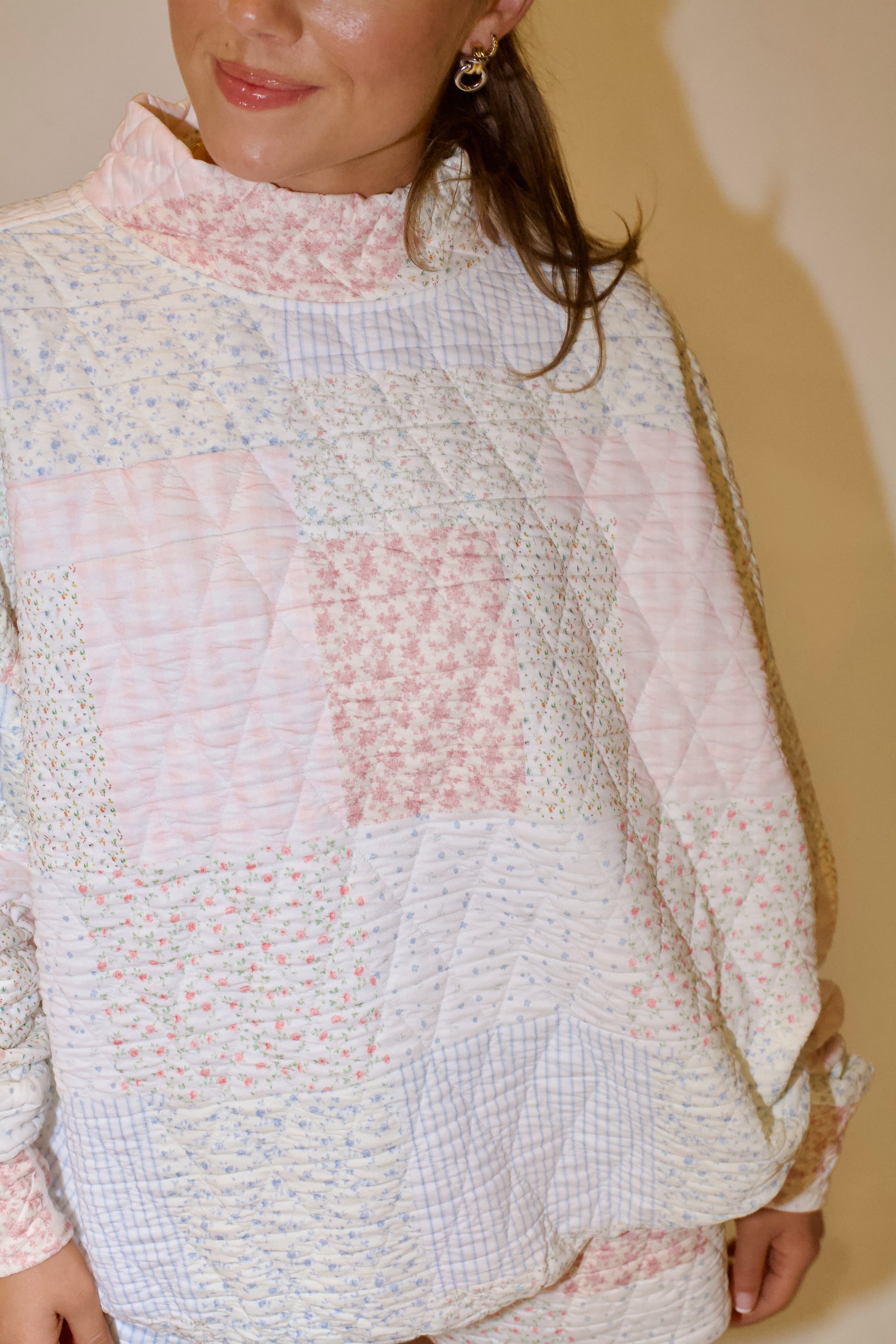 Sabrina Quilted Mockneck Sweatshirt- Pastel Pink Multi