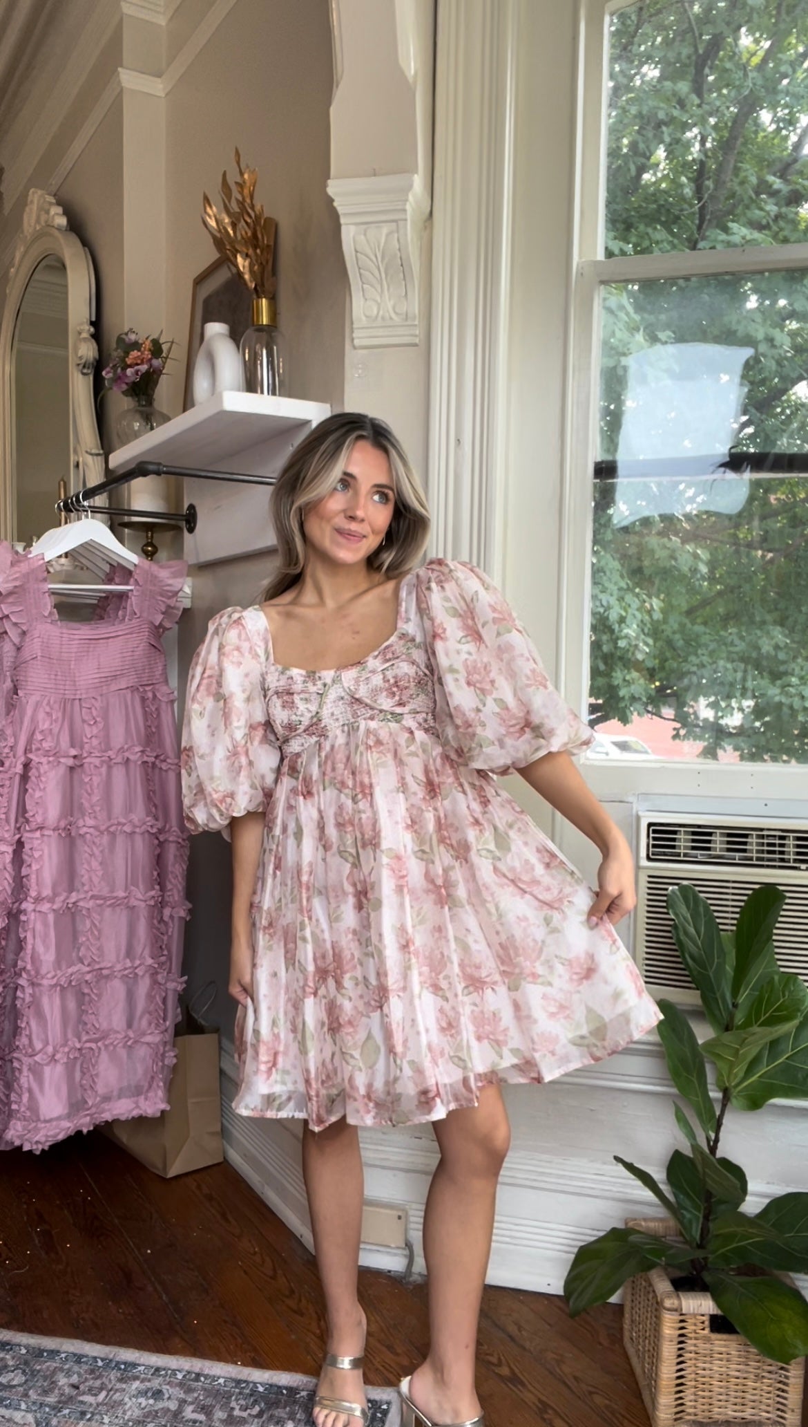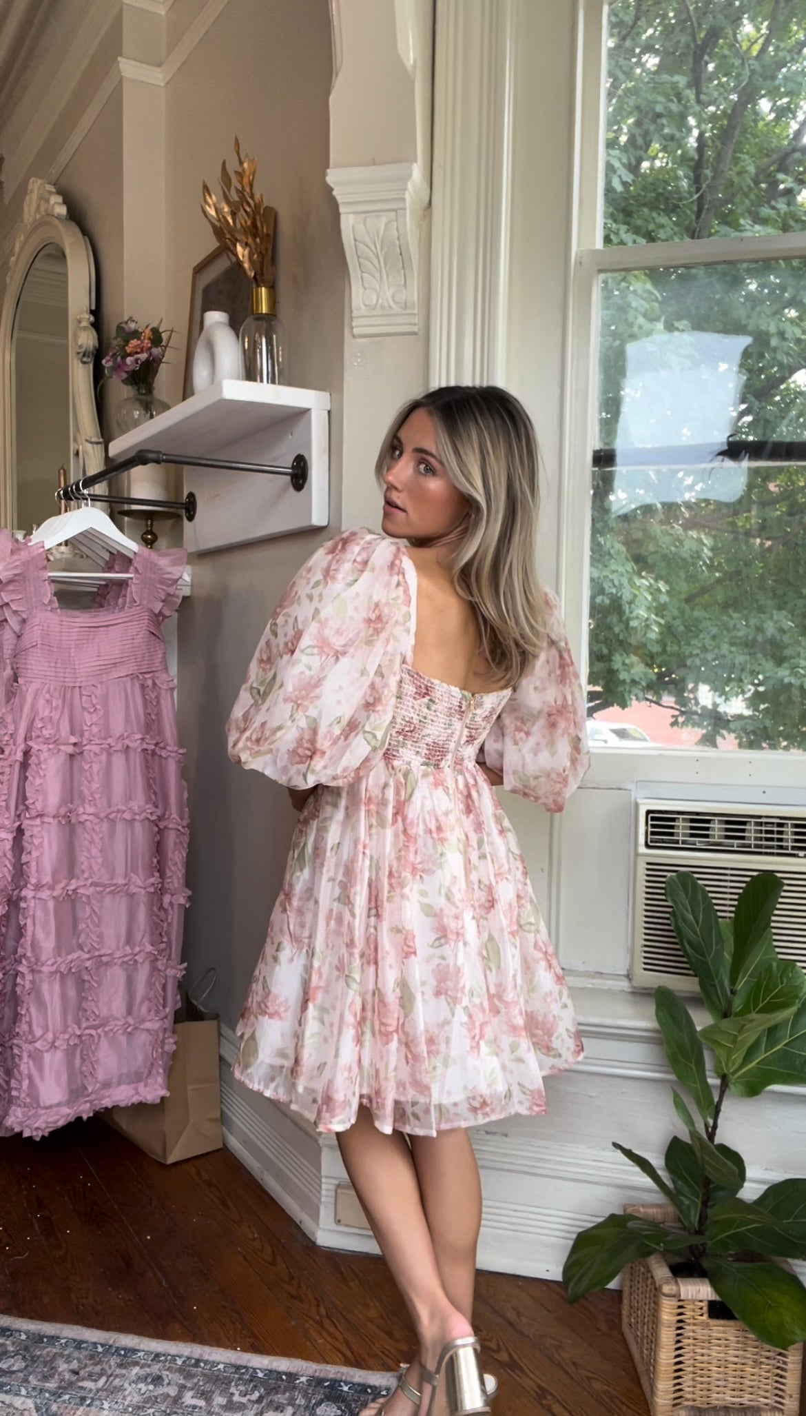 A mini dress we will never get over! The smocked bust detailing and extra puffy sleeves makes this dress so fem and we are absolutely here for it!