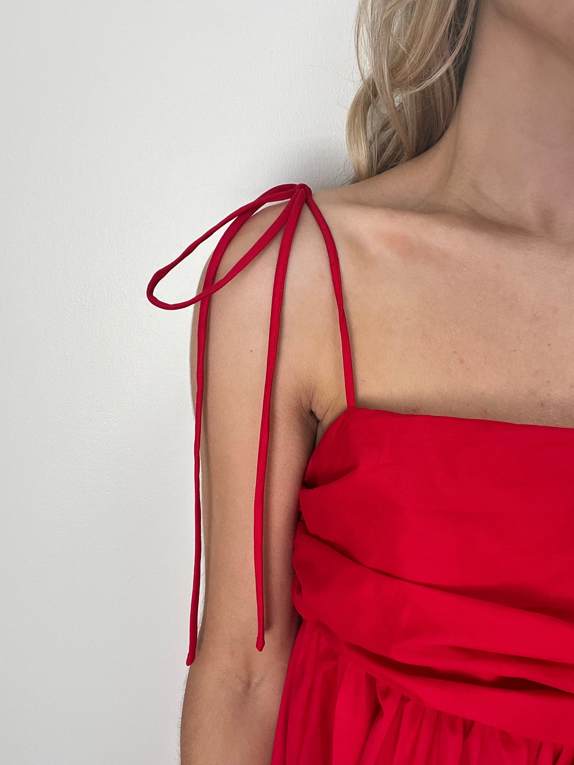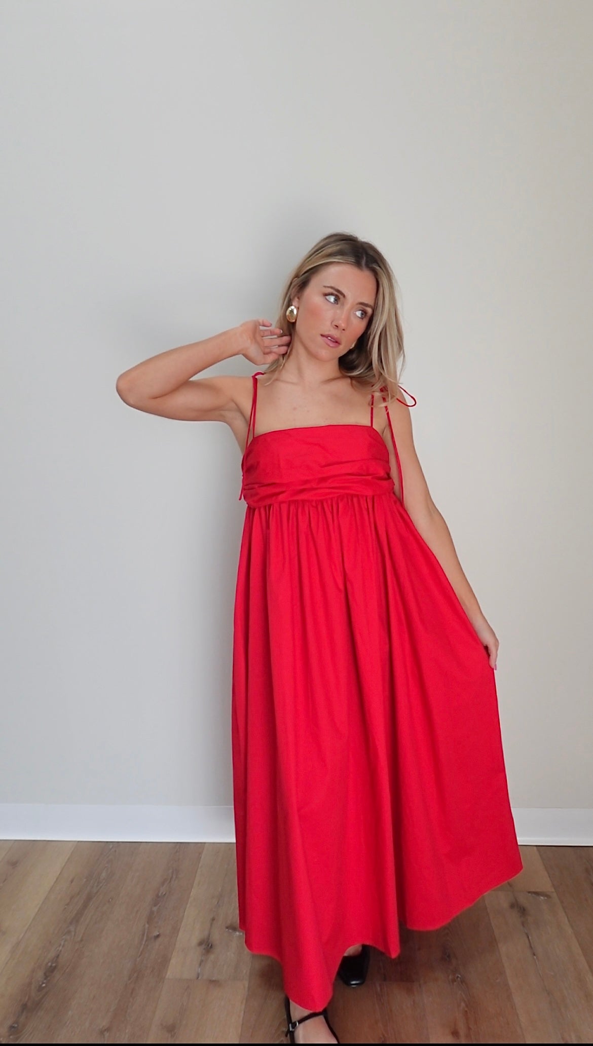 Nothing screams late summer like a strappy, red dress! Layer this classic piece over your favorite basic for a laid back look or on it's own for a stunning evening dress!