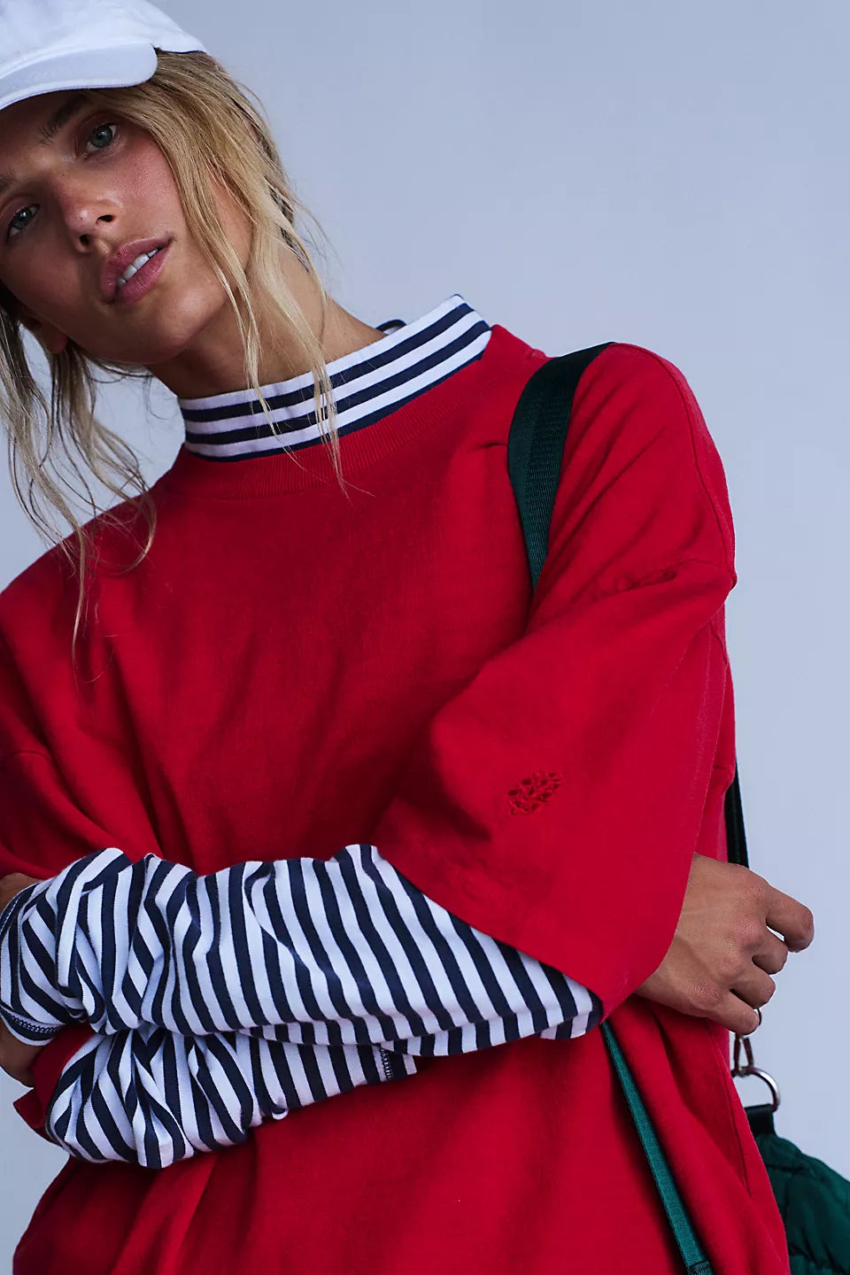 Features: Scoop neckline; dropped shoulders; slouchy, boxy fit